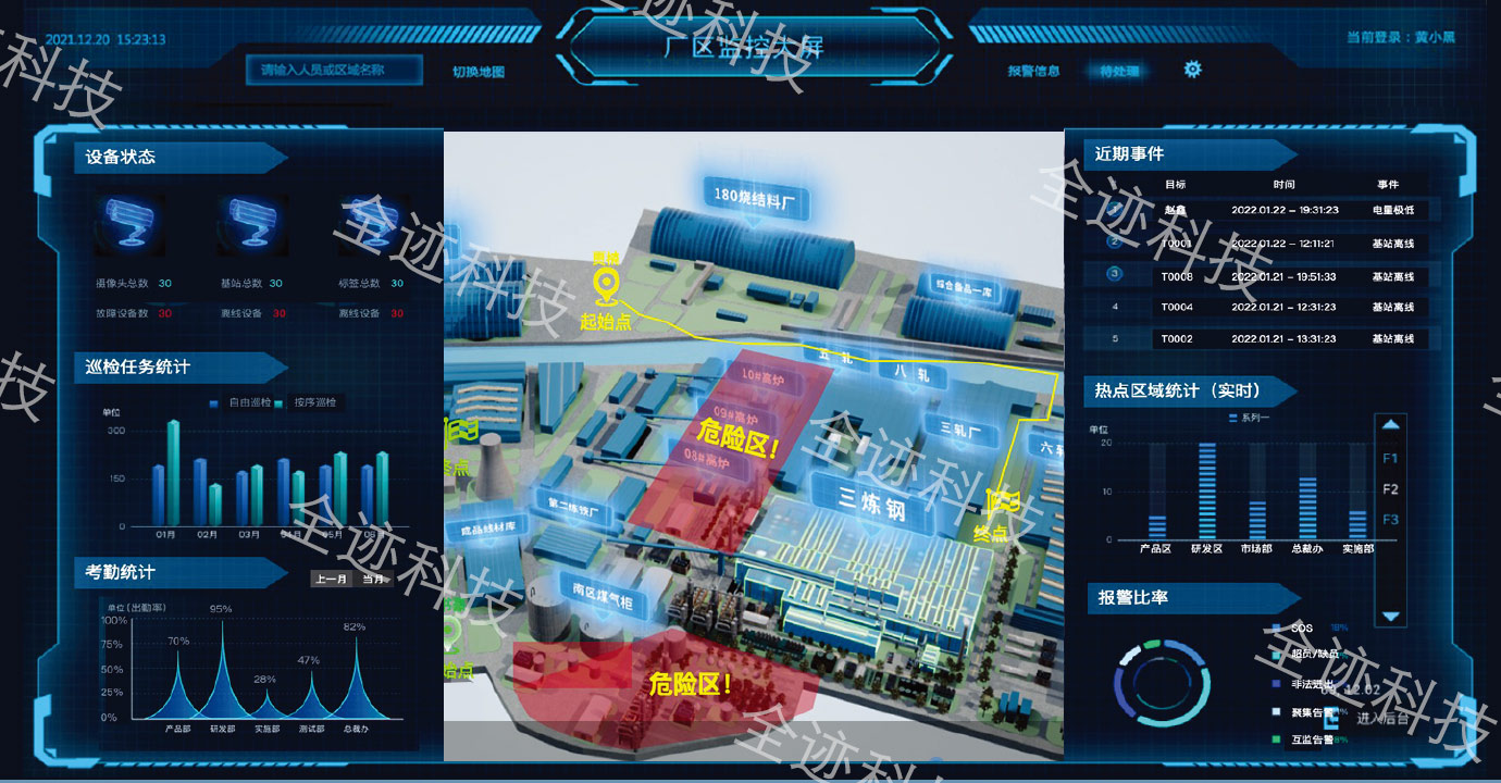 對汽輪機(jī)房、鍋爐房、電機(jī)、油庫等高危區(qū)域動態(tài)監(jiān)管,無權(quán)限人員滯留、靠近則觸發(fā)告警。