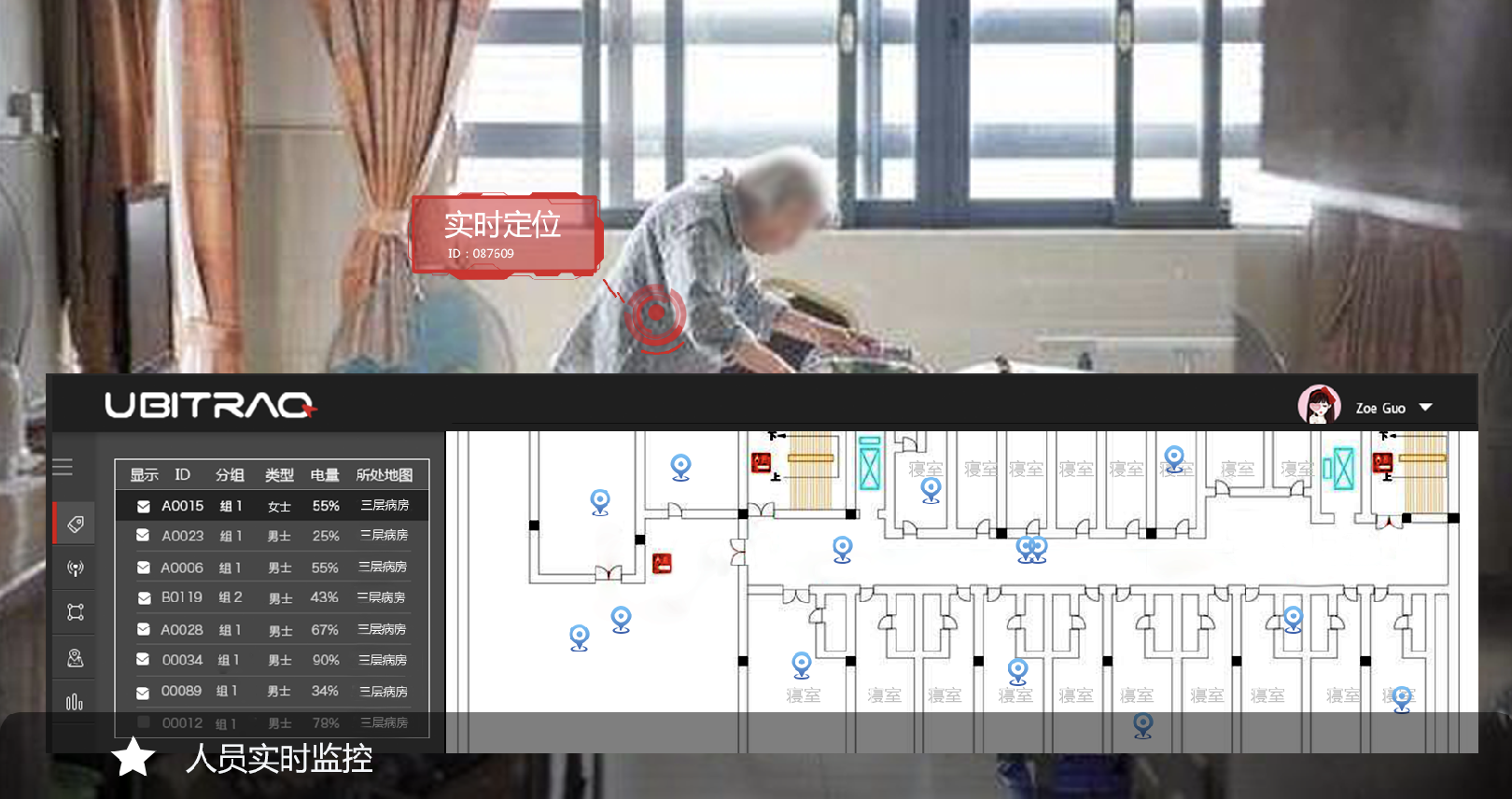 全跡科技養(yǎng)老行業(yè)高精度定位管理系統(tǒng)使用UWB室內(nèi)定位技術(shù),通過在被看護(hù)人身上佩戴定位標(biāo)簽,與養(yǎng)老院內(nèi)安裝的定位基站無線連接,實現(xiàn)對被看護(hù)人的精準(zhǔn)定位。管理人員可設(shè)定電子圍欄,被監(jiān)護(hù)人在離開規(guī)定區(qū)域或超出時間,后臺會觸發(fā)警報。老人在發(fā)生意外時可以通過緊急求救按鈕向管理人員發(fā)出求救信號,管理人員可及時得到老人求救信息和準(zhǔn)確位置,進(jìn)行緊急救助。同時手環(huán)型定位標(biāo)簽可以遠(yuǎn)程監(jiān)控老人心率、血氧、脈搏、血氧指標(biāo)等功能。